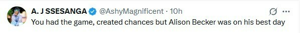 A. J SSESANGA: Вы вели игру, создавали моменты, но Алиссон был в лучшей форме.