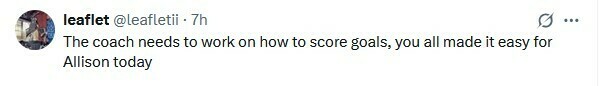leaflet: Тренеру нужно поработать над тем, как забивать голы, вы все облегчили задачу Алисcону.