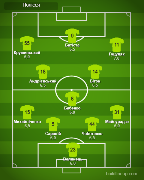 «Полесье»: Волынец, Михайличенко, Сарапий, Чоботенко, Майсурадзе – Бабенко (Бескоровайный, 87), Битон (Йосефи, 62), Андриевский (Караман, 82) – Крушинский (Назаренко, 46), Гуцуляк, Батиста (Леднев, 82)