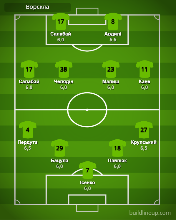 «Ворскла»: Исенко – Пердута, Бацула, Павлюк, Крупский – Салабай (Иеде, 90+3), Челядин (Хрипчук, 74), Малыш, Кане – Кулач (Ндукве, 74), Авдыли (Мякушко, 46).