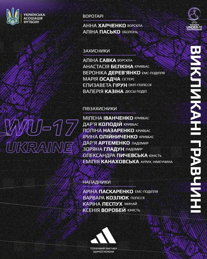 Определен состав девичьей сборной Украины WU-17, который будет участвовать в матчах второго раунда отбора Евро-2025 WU-17.