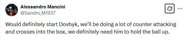 Alessandro Mancini: Определенно выпустил бы Довбика, нам предстоит много контратак и передач в штрафную, он нам определенно нужен, чтобы удерживать мяч.