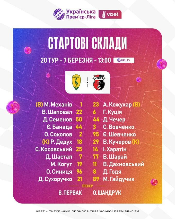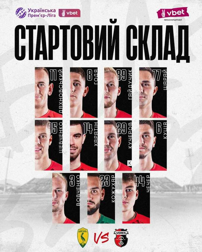 Опубликованы стартовые составы на матч УПЛ Левый Берег – Верес