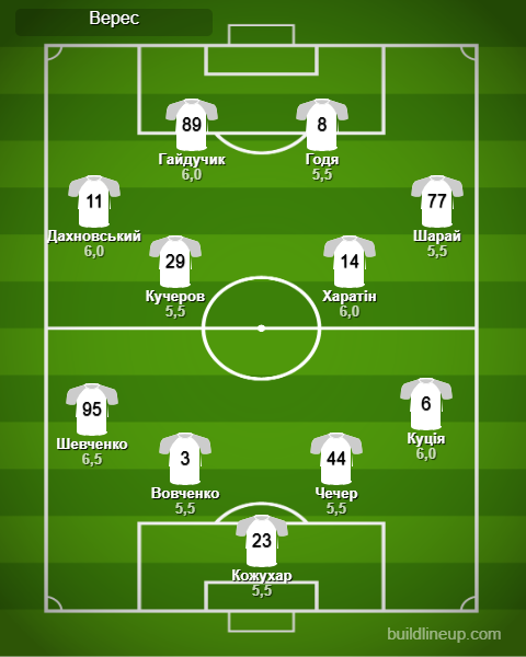 «Верес»: Кожухарь, Шевченко (Смиян, 75), Вовченко, Чечер (Клёц, 46), Куция (Протасевич, 75) – Дахновский, Кучеров, Харатин, Шарай (Луан, 46) – Гайдучик, Годя (Степанюк, 46)