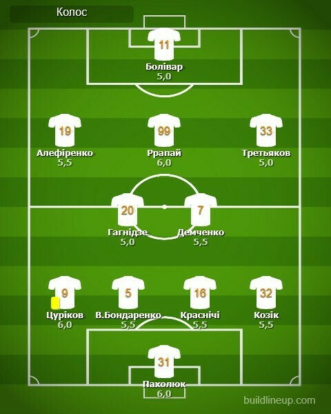 «Колос»: Пахолюк, Цуриков, В.Бондаренко, Красничи, Козик, Демченко, Гагнидзе, Алефиренко, Ррапай (Ковталюк, 67), Третьяков (Р.Кузик, 77), Боливар
