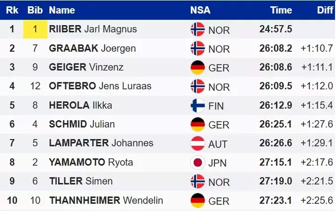 - 1. Ярл Магнус Риибер (Норвегия) 24:57.5