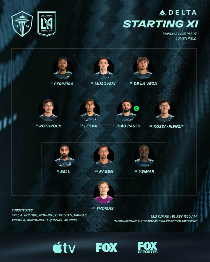 Стартовые составы на матч Сиэтл Саундерс – Лос-Анджелес