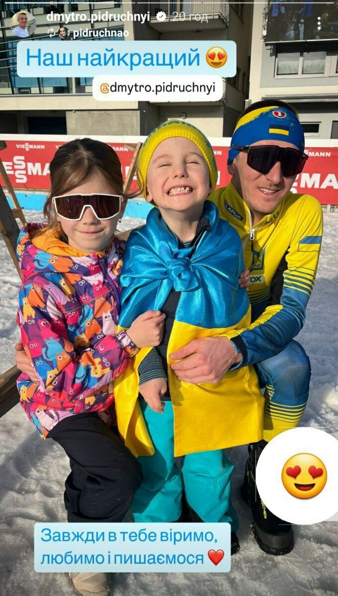 Капитан сборной Украины по биатлону Дмитрий Пидручный в социальной сети Instagram опубликовал фотографию с детьми, приехавшими поддержать отца в гонке преследования на этапе Кубка мира в городке Новое Место (Чехия).