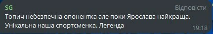 SG: Топич опасная оппонентка, но пока Ярослава самая лучшая. Уникальна наша спортсменка. Легенда.
