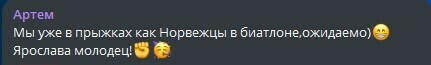 Артем: Мы уже в прыжках как Норвежцы в биатлоне, ожидаемо) Ярослава молодец!