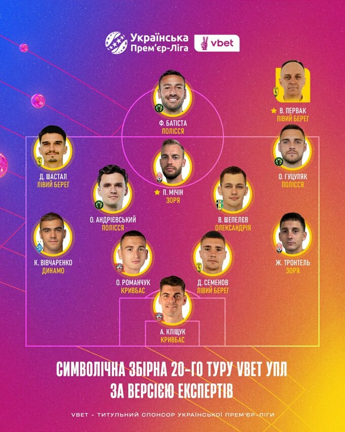Украинская Премьер-лига определила символическую сборную, а также назвала лучшего игрока и лучшего тренера 20-го тура УПЛ.