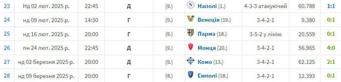 В нынешнем сезоне Серии А команда Артема Довбика располагается на седьмом месте в турнирной таблице (13 побед, 7 ничьих, 8 поражений).
