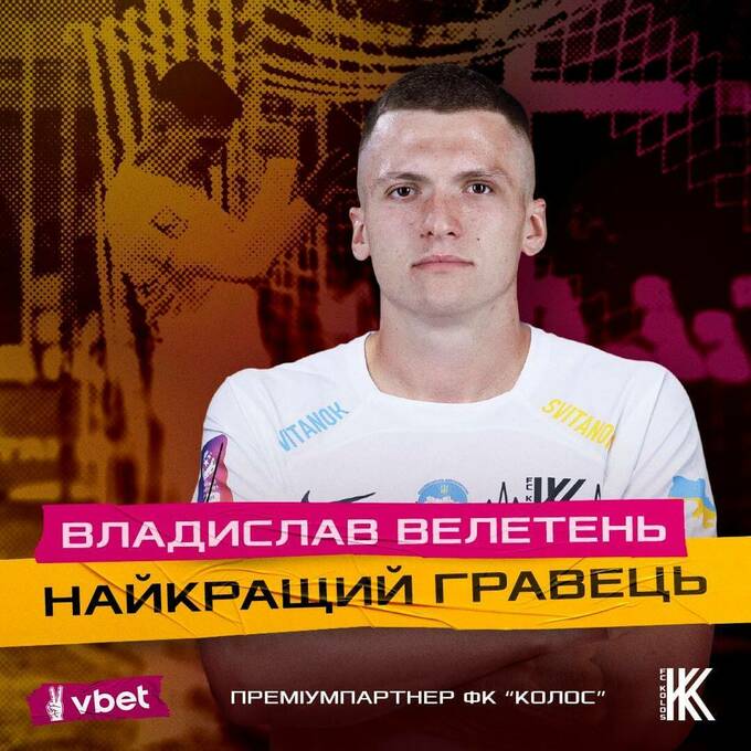 Хавбек Владислав Велетень – лучший игрок зимнего периода 2024/25 по версии болельщиков Колоса.