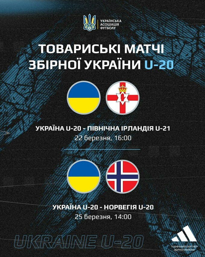Юношеская сборная Украины U-20, которая осенью примет участие в чемпионате мира, во время учебно-тренировочного сбора в Турции проведет два товарищеских матча. 22 марта национальная команда сыграет против Северной Ирландии U-21, а через три дня встретится с Норвегией U-20.