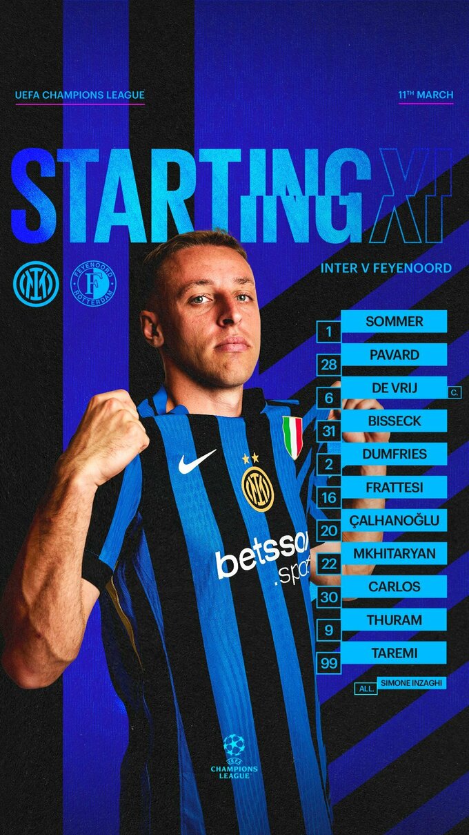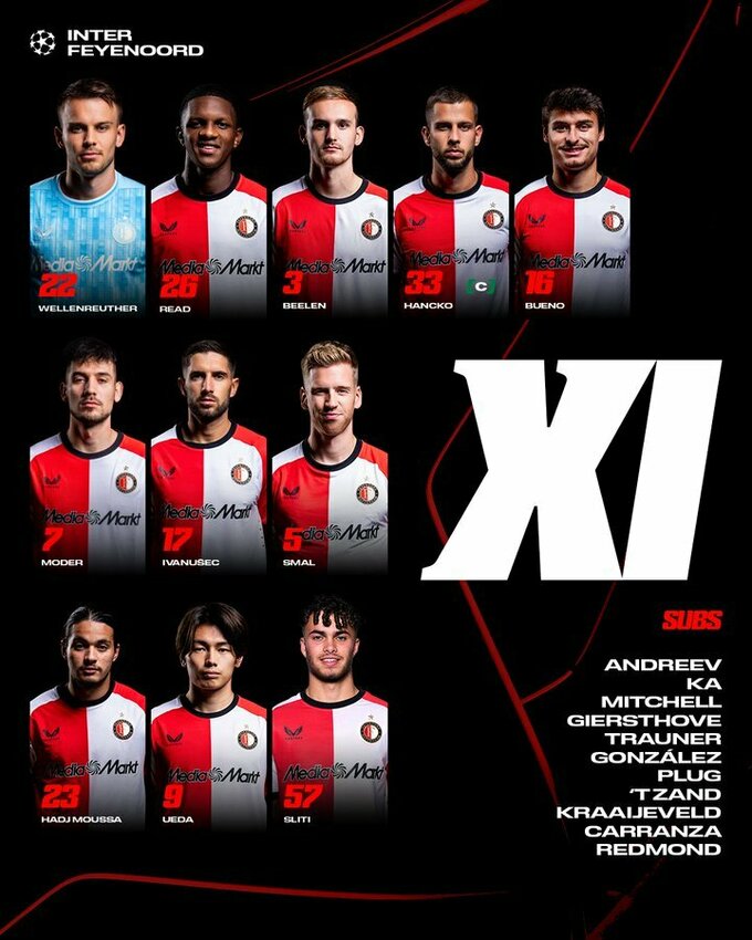 Стартовые составы на матч «Интер» – «Фейеноорд»: