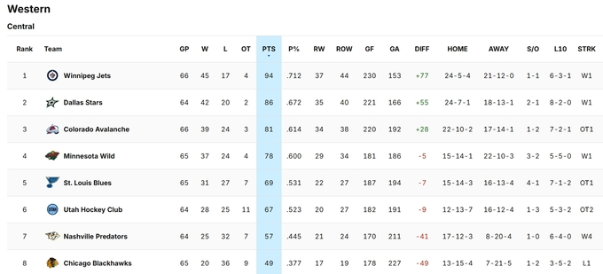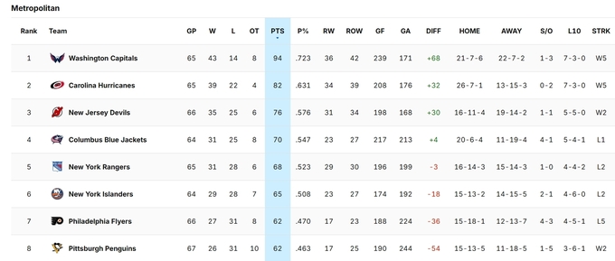 Команда идет второй в общей таблице, уступая лишь Вашингтону по дополнительным показателям. У Кэпиталз еще нет 45 побед, но сегодня команда одолела Анахайм 7:4 и выиграла пятую встречу кряду.