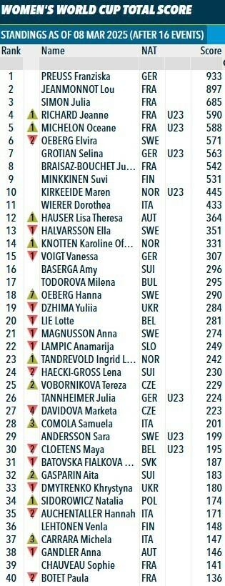Какое место у Джимы? Общий зачет биатлонисток КМ перед этапом в Поклюке