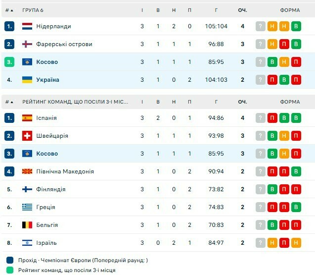 После осенних побед над Фарерами и поражения от Нидерландов Украину 13 и 16 марта ожидала спарка с Косово. Напомним, на чемпионат Европы выходят напрямую две лучшие команды группы и четыре лучшие третьи команды.