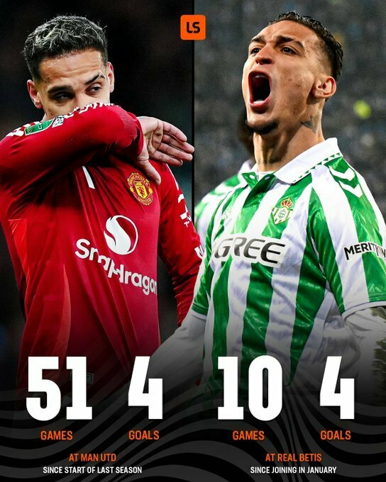 Бетис арендовал Антони из МЮ зимой 2025 года до конца текущего сезона.