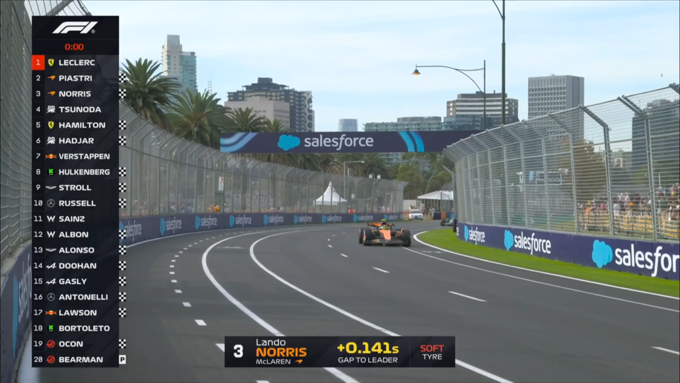 В течение второй практики обмен лучшими результатами показывали Леклер и пилоты Макларена, а первое время осталось за гонщиком Феррари, который опередил Пиастри и Норриса на 0,1 секунды.