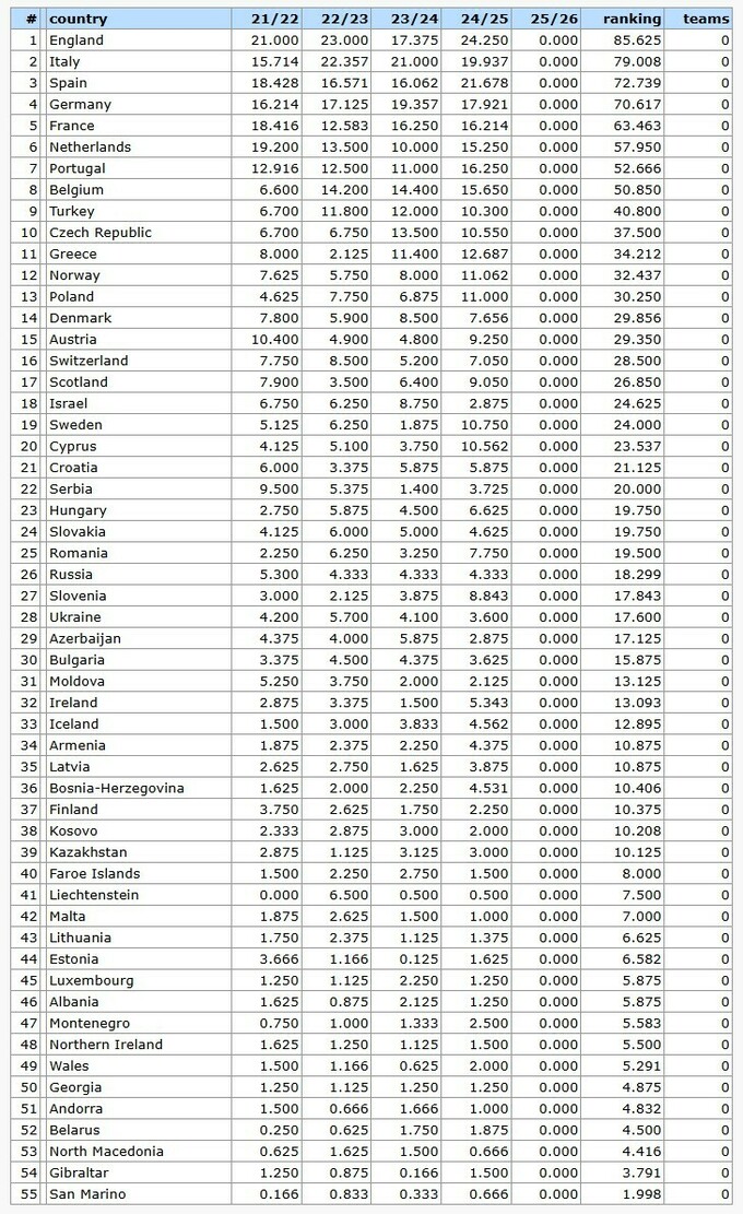 але поки що це десь приблизно і є наше місце - в 3-ому десятку, але з наступного року вже повинно бути краще - буде лише 4 клуби, тобто більше коефіцієнт. НУ і потрібно щоб таки клуби грали в єврокубках (а не відбували номер як 4 з 5 клубів цього року), якщо буде хоча б 1 клую в ЛЄ та 2 в ЛК на основний турнір, то ситуація покращиться.