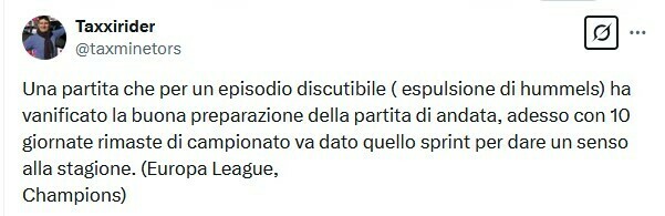 Taxxirider: Из-за сомнительного эпизода (удаление Хуммельса) подорвал хороший результат первого матча, теперь, когда до конца чемпионата осталось 10 туров, необходимо уделить внимание этим матчам, чтобы придать смысл сезону.