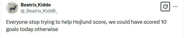 Beatrix_Kiddo: Все, прекратите пытаться помочь Хойлунду забить гол, иначе мы могли бы забить сегодня 10 голов.
