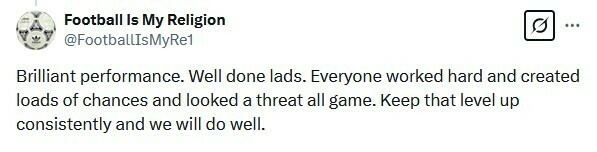 Football Is My Religion: Блестящее выступление. Молодцы, ребята. Все упорно трудились, создали кучу моментов и выглядели угрожающе на протяжении всей игры. Поддерживайте этот уровень постоянно, и у нас все получится.