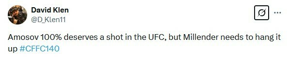David Klen: Амосов на 100% заслуживает шанса выступить в UFC, но Миллендеру пора оставить этот бой.
