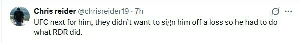 Chris reider: UFC следующий для него, они не хотели подписывать его проигрыш, так что ему пришлось сделать то, что сделал RDR.