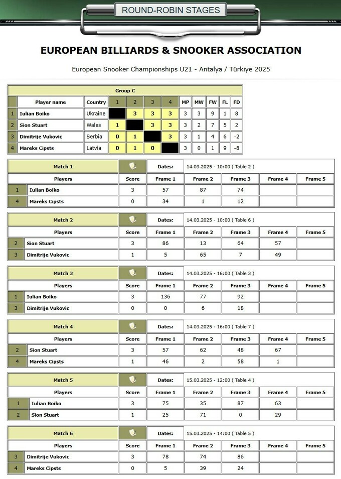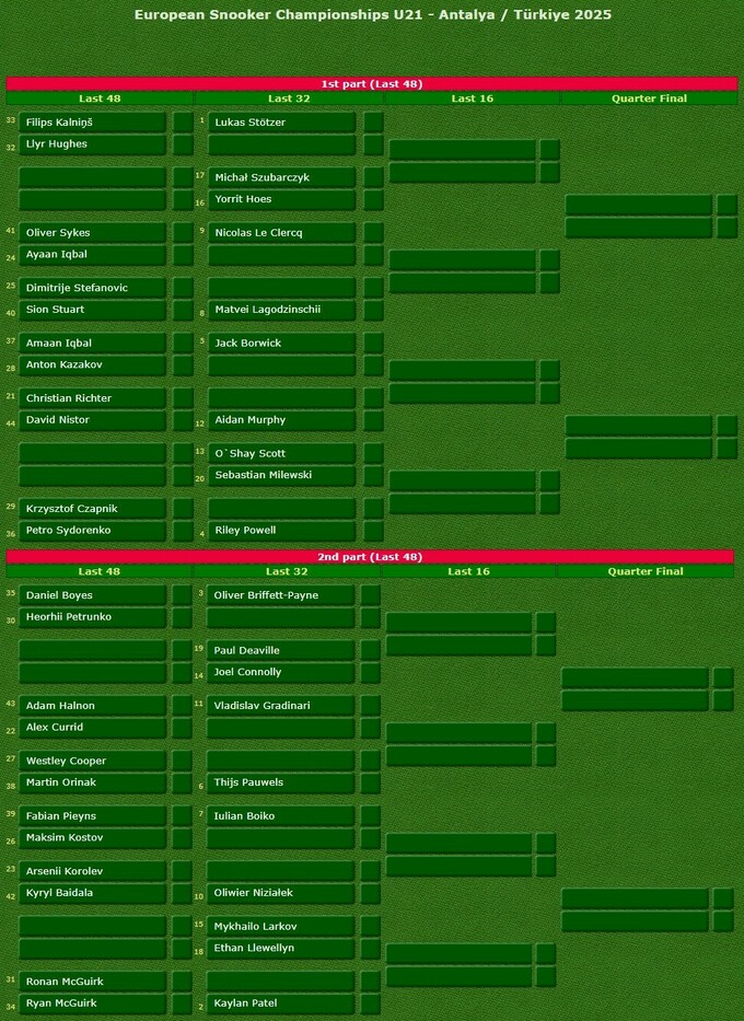 Снукер. Чемпионат Европы 2025 U-21 под эгидой EBSA