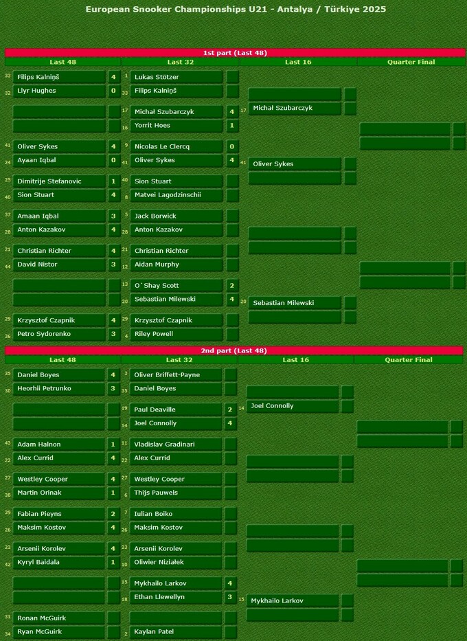 ЧЕ-2025 U-21 по снукеру. Сетка плей-офф