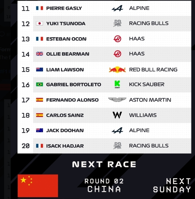 Нельзя не отметить суперезультат 18-летнего пилота Мерседеса Андреа Кими Антонелли. Новичок в дождь показал спокойную езду и финишировал на четвертой позиции.