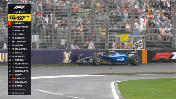 Первым за резиной поехал Норрис, а из-за дождя снова выехал сейфити-кар после аварий новичков Бортолето и Лоусона.