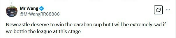 Mr Wang: «Ньюкасл» заслуживает того, чтобы выиграть Кубок, но мне будет очень грустно, если мы испортим чемпионат на этом этапе.