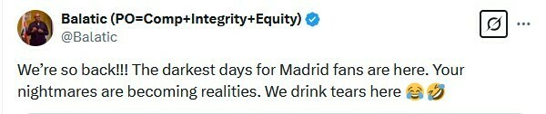 Balatic (PO=Comp+Integrity+Equity): Мы вернулись!!! Самые темные дни для фанатов Мадрида уже наступили. Ваши кошмары становятся реальностью.