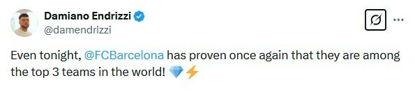 Damiano Endrizzi: Даже сегодня вечером Барселона в очередной раз доказала, что входит в тройку лучших команд мира!