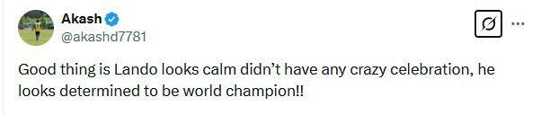 Akash: Хорошо, что Ландо выглядит спокойным, не устраивал никаких безумных празднований, он полон решимости стать чемпионом мира!!