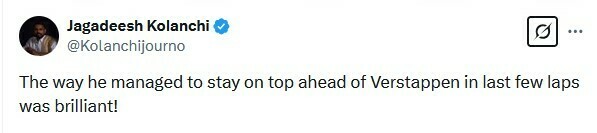 Jagadeesh Kolanchi: То, как ему удалось удержаться на вершине, опередив Ферстаппена на последних кругах, было блестящим!