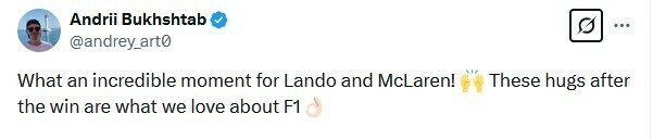 Andrii Bukhshtab: Какой невероятный момент для Ландо и Макларена! Эти объятия после победы – это то, что нам нравится в F1.