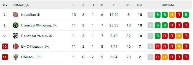 Голы: Стець, 7, 28, 40, Триль, 9, Мущенская, 10, Семенюк, 30, 41, Яськова, 36 (автогол), Низовая, 42