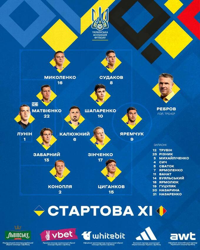 Наставник сборной Украины Сергей Ребров на первый матч плей-офф Лиги наций против Бельгии основным вратарем выбрал Андрея Лунина.