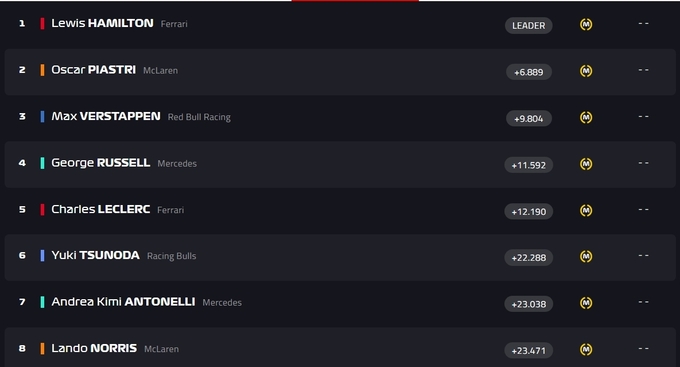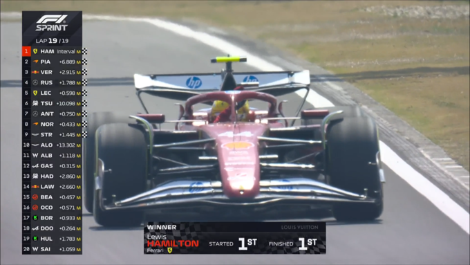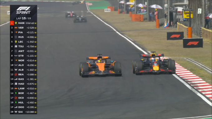 Вторым финишировал Оскар Пиастри на Макларене. Австралиец, стартовавшим третьим, в конце спринта прошел Ферстаппена.