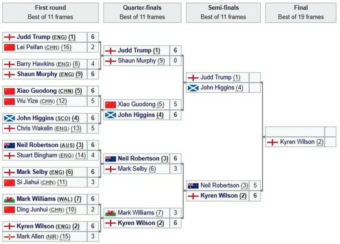 - Джадд Трамп (Англия) – Джон Хиггинс (Шотландия)