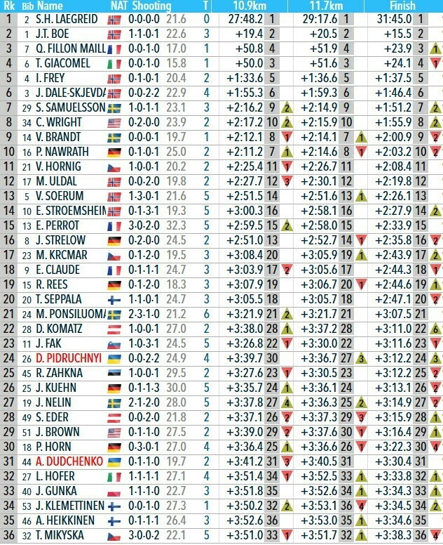 - 1. Стурла Легрейд (Норвегия) (0+0+0+0) 31:45.0