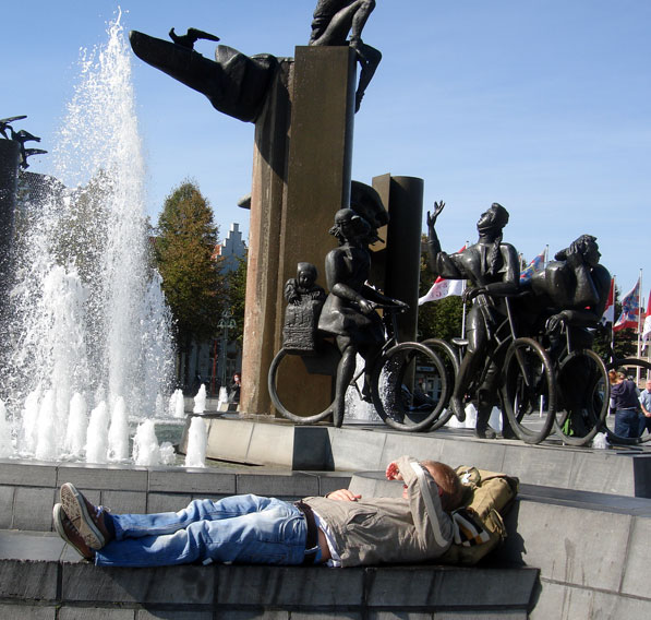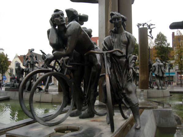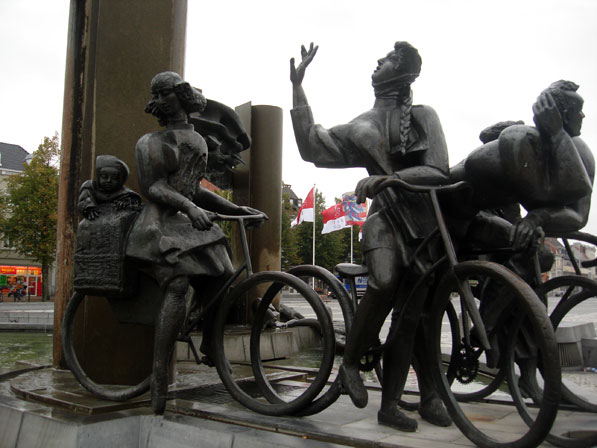 Велосипедисты на памятнике, велосипедисты повсюду и в городе