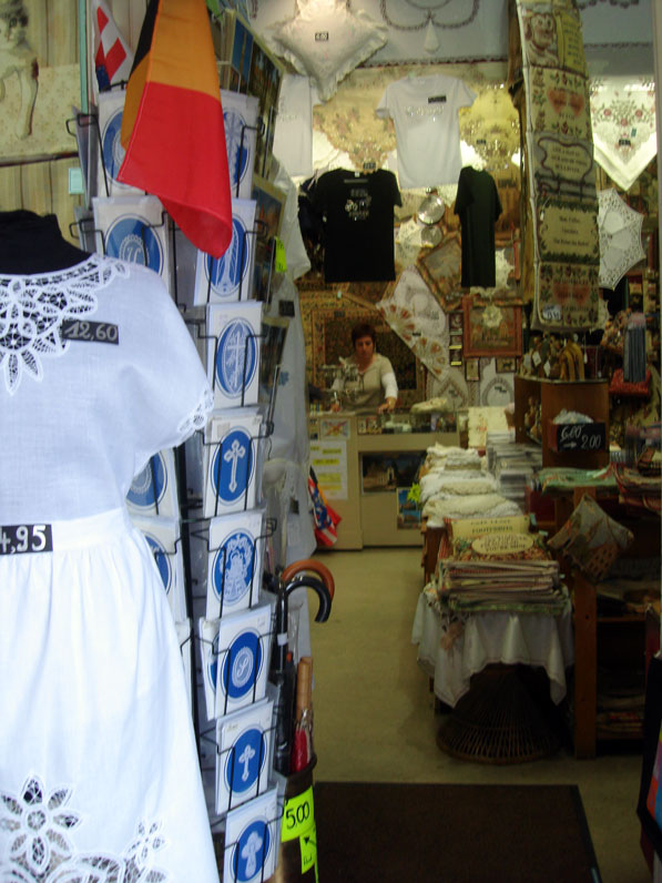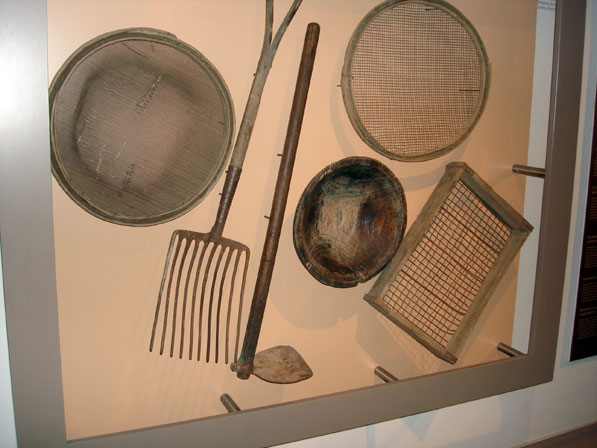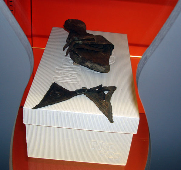 Потому веселые толпы учащихся загоняли внутрь, а жадные до искусства пенсионеры (вместе со мной) оставались ни с чем. Но ничего страшного, музеев еще было много. Например, археологический, сделанный с любовью и фантазией. Постоянная игра на сочетании старины и современности: телевизор с передачей типа Смака, на которой женщина в старинной одежде готовит с помощью такой же посуды такое же блюдо, или древняя обувь, выставленная как в обычном магазине, шкаф со старинной и современной посудой. Детишки могут переодеться в наряды своих предков и пофотографироваться. Повсюду скелеты. В общем, отличный музей, после его посещения археологией и мертвый увлечется.