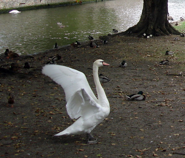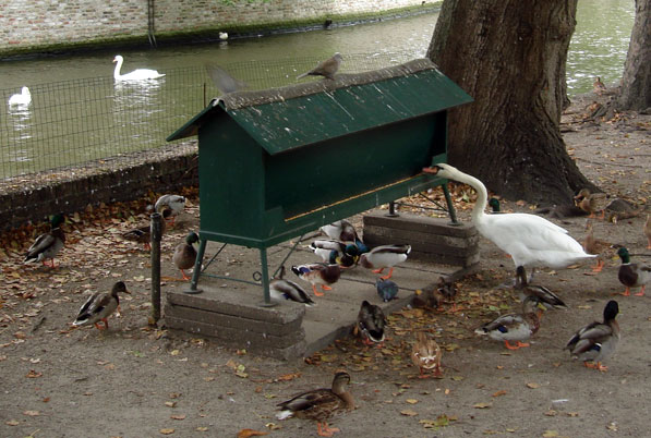 Здесь птички могут поесть. Самых наглых уток лебедь клюет в затылки.