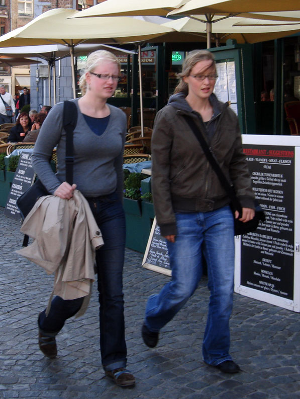 Жители Брюгге, как и в большинстве городов западной Европы – вежливые и приветливые. В своей многоязычной стране они очень хорошо говорят по-английски, от уличных «оливеров твистов» до вполне пожилых машинистов. Мы ездили на электричке в Зеебрюгге (к морю) и перепутали дату отбытия, так из проходящего мимо паровоза специально вылез машинист и стал спрашивать, что случилось, почему мы одиноко сидим на лавочке, сказал даже, что сам бы довез нас, если не надо было ехать в депо.