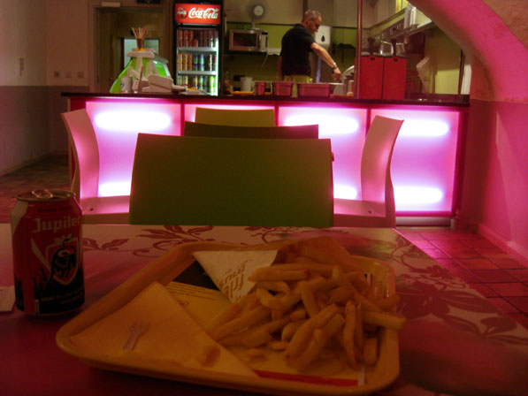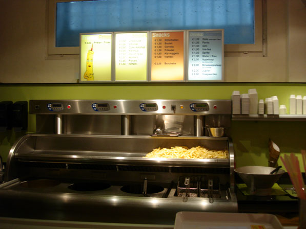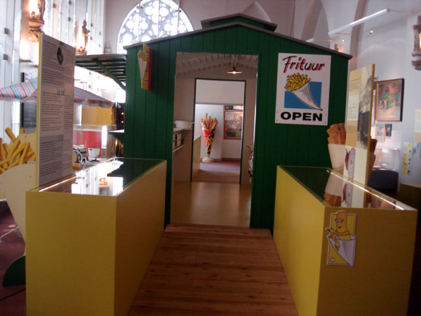 В музее бельгийской жареной картошки (Friet Museum) главное, конечно, внизу, где за умеренную плату (1,60 евро) вам насыпят этого чудо-картофана (особенность приготовления, как они сказали, в двух стадиях жарки, сначала на температуре 130-140, а после 10-минутной паузы, уже на 165-170). Не могу сказать, что по вкусу этот «фритес» так уж сильно отличался от French Fries, но бельгийцам об этом лучше не говорить. Тем более, что вообще-то было вкусно.